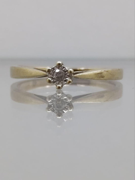 Vintage 9ct Gold Diamond Solitaire Ring with Illusion Setting - Size M 1/2