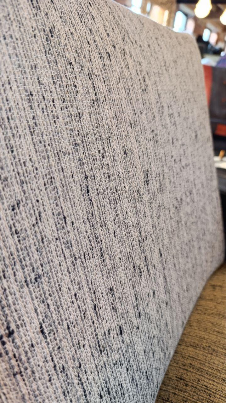- Upholstery: textured speckled fabric