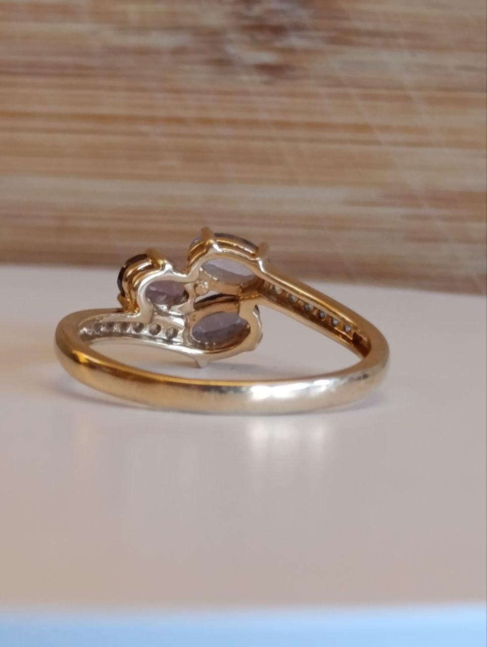 Ceylon Sapphire, Amethyst & Cubic Zirconia 9ct Gold Ring - Size S