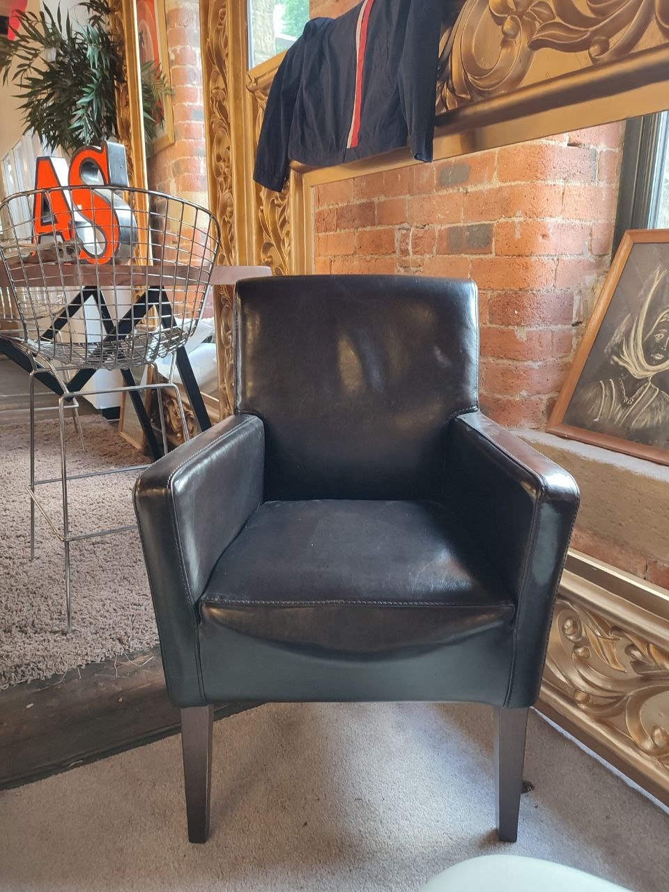 Elegant Compact Tub Chair in Soft Black Leather with Oak Finish - Perfect for Hallway, Office, or Kitchen