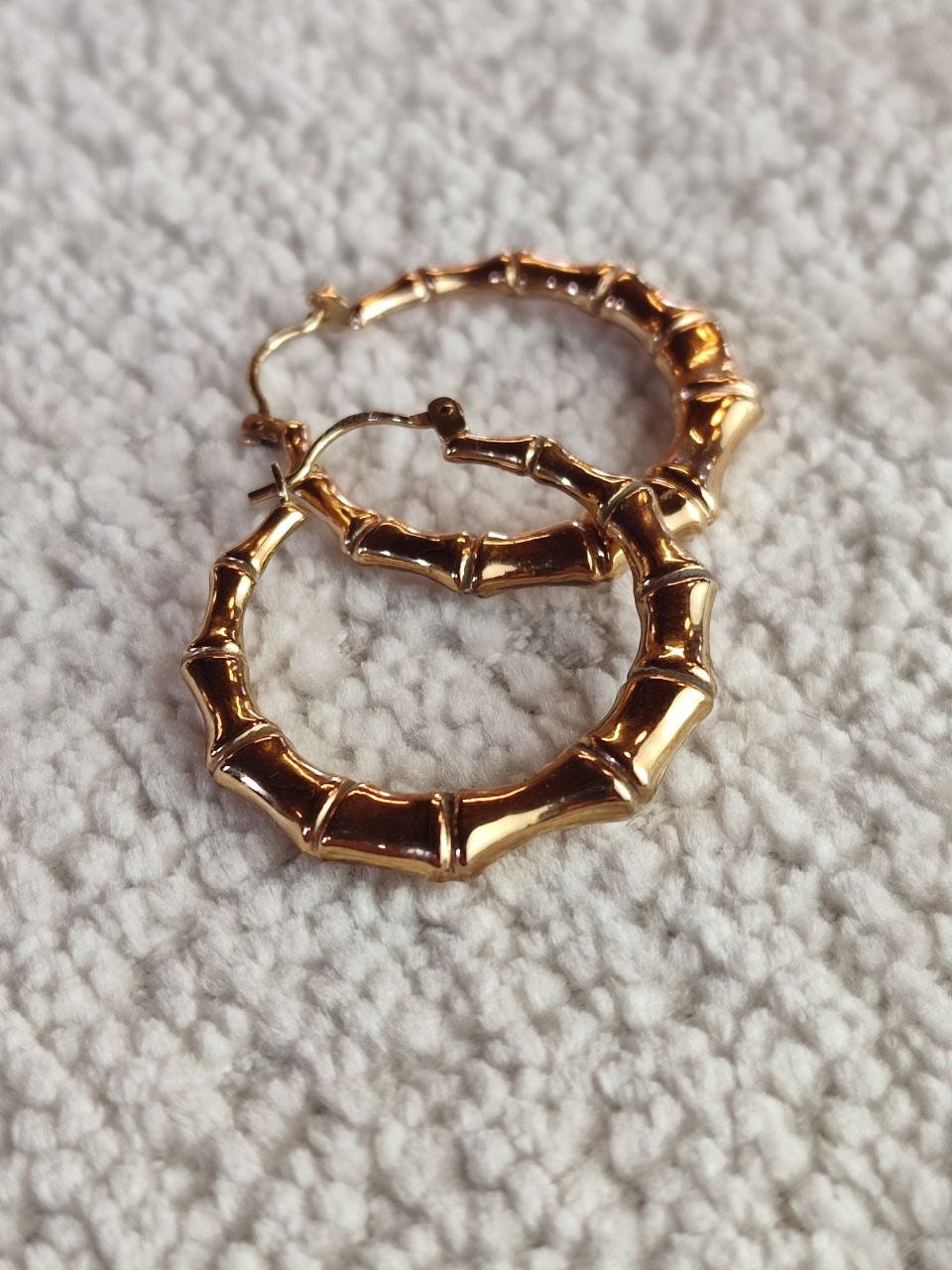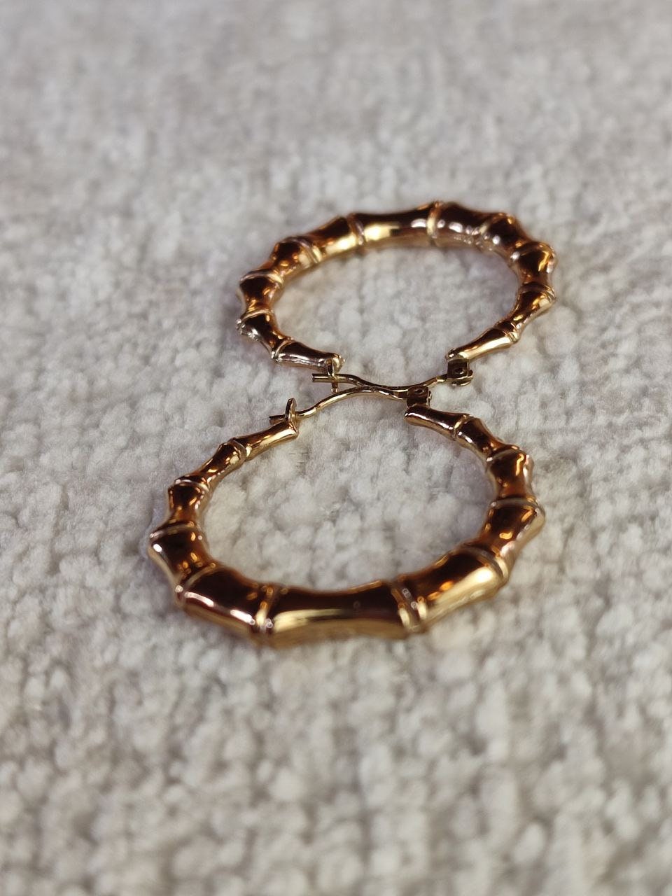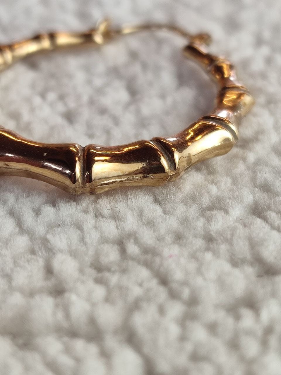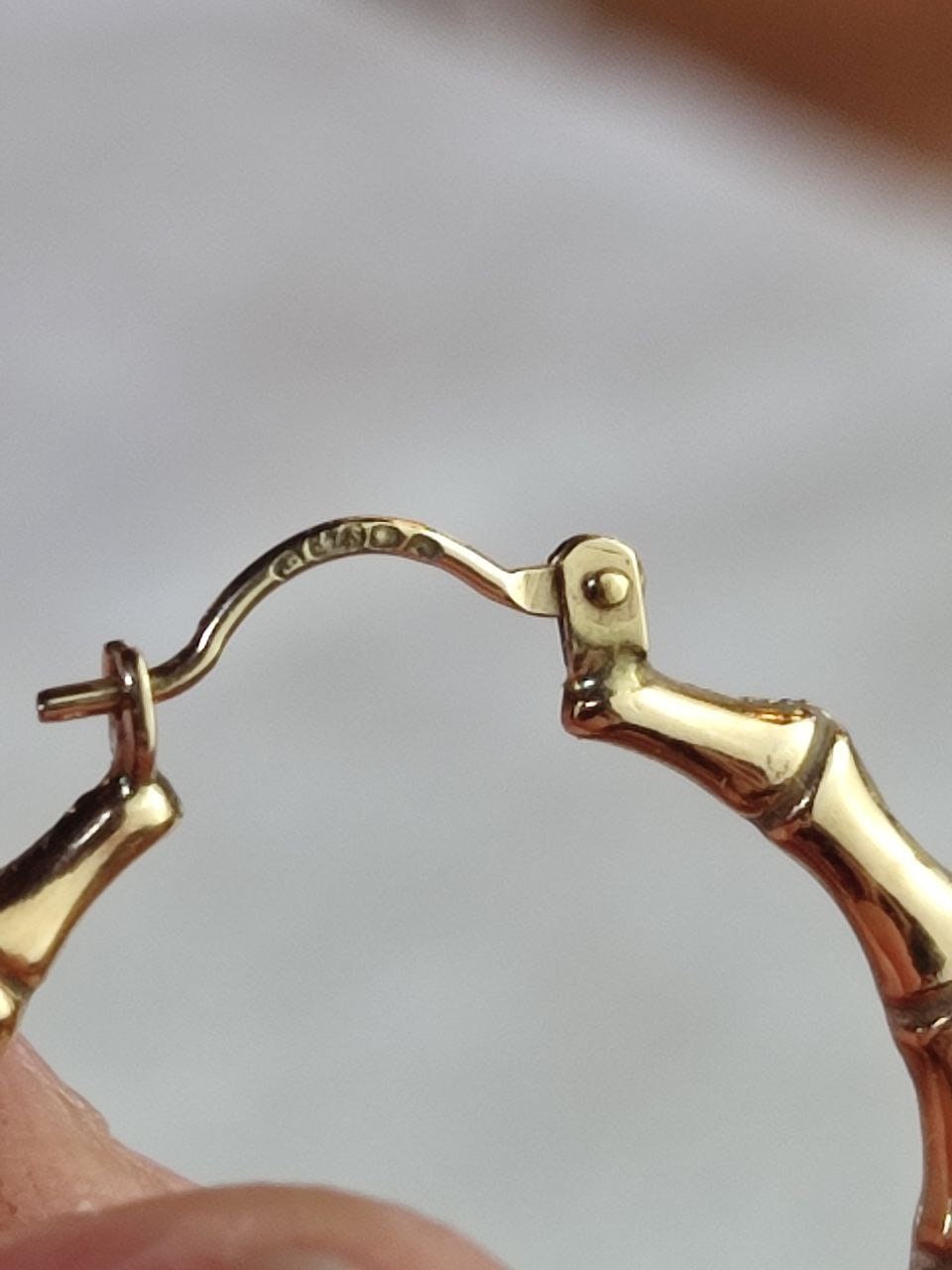 Their rich gold colour and excellent condition make them a timeless addition to any jewellery collection, free from any damage or substantial marks. Embrace the charm and sophistication of these exquisite hoop earrings.