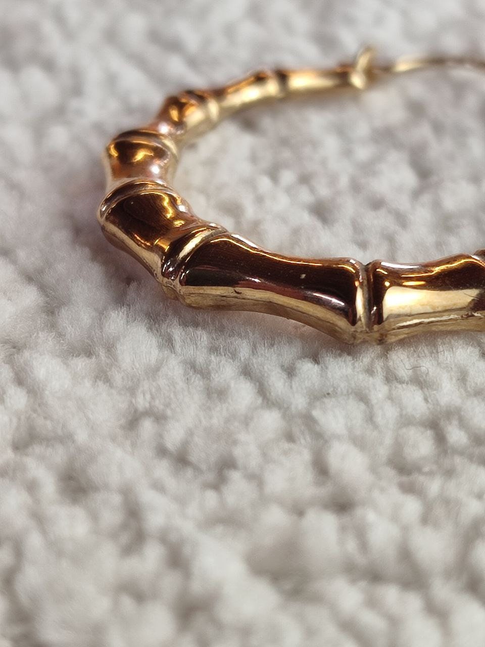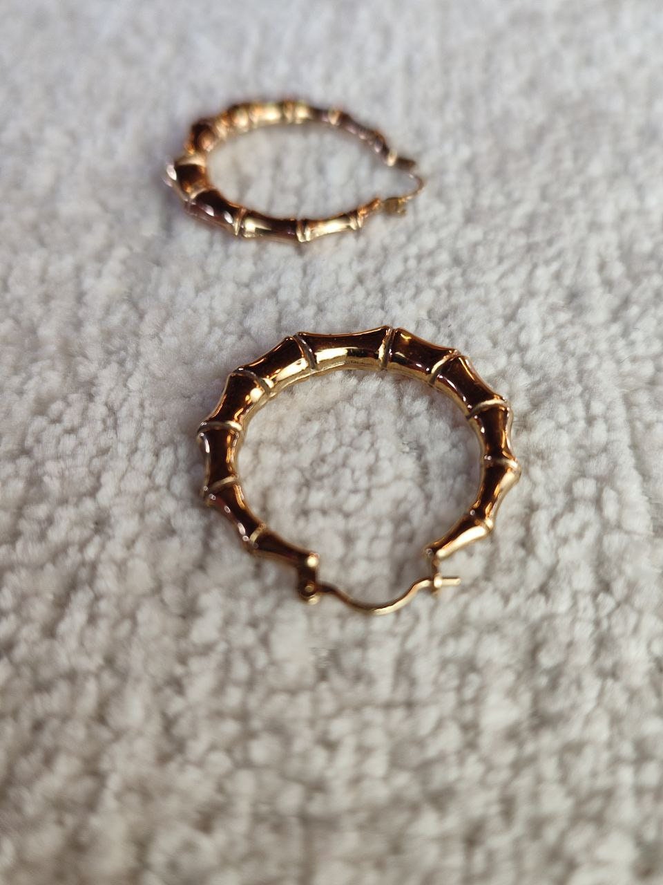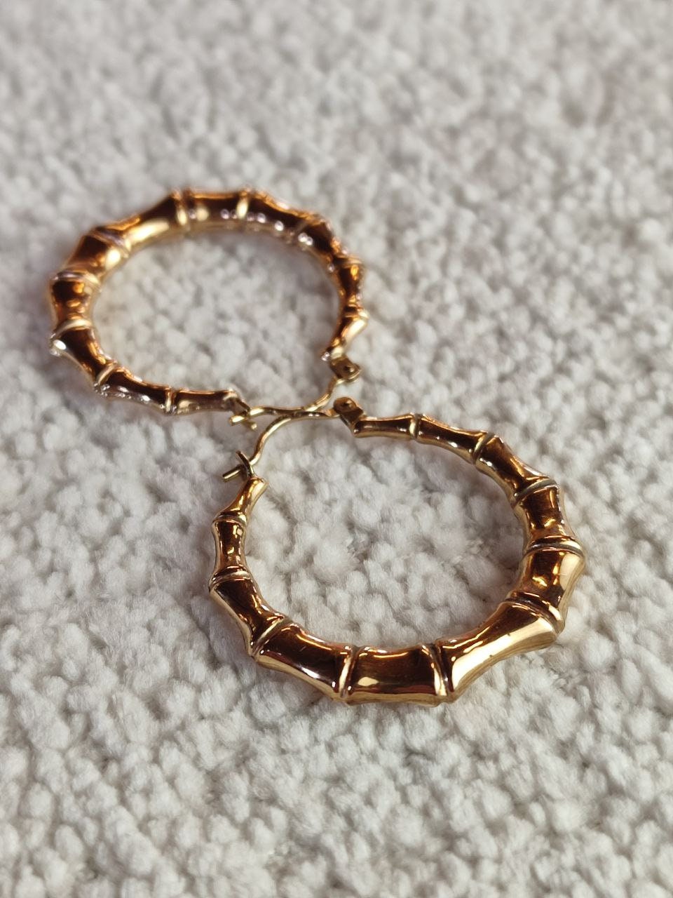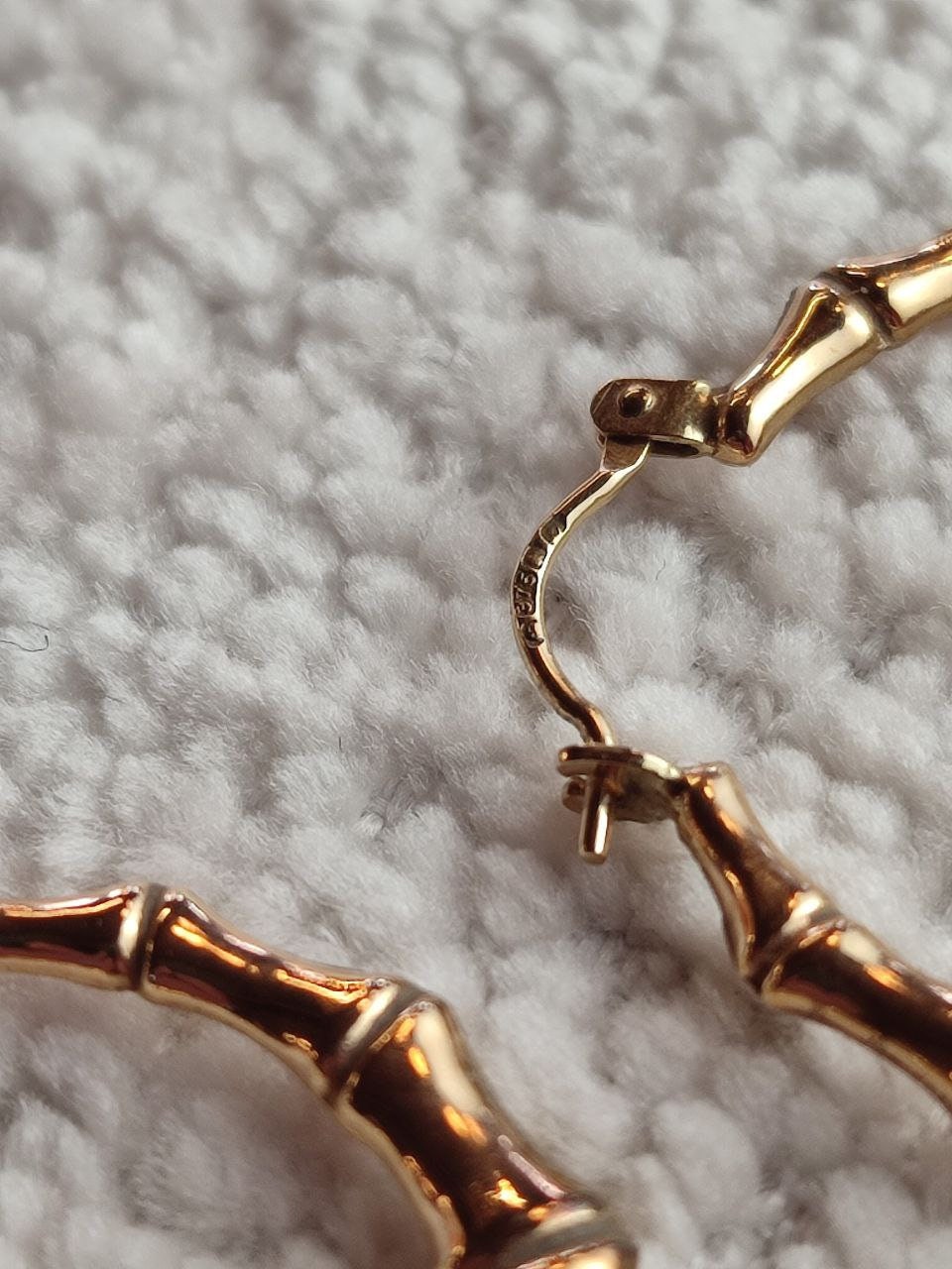 Their rich gold colour and excellent condition make them a timeless addition to any jewellery collection, free from any damage or substantial marks. Embrace the charm and sophistication of these exquisite hoop earrings.