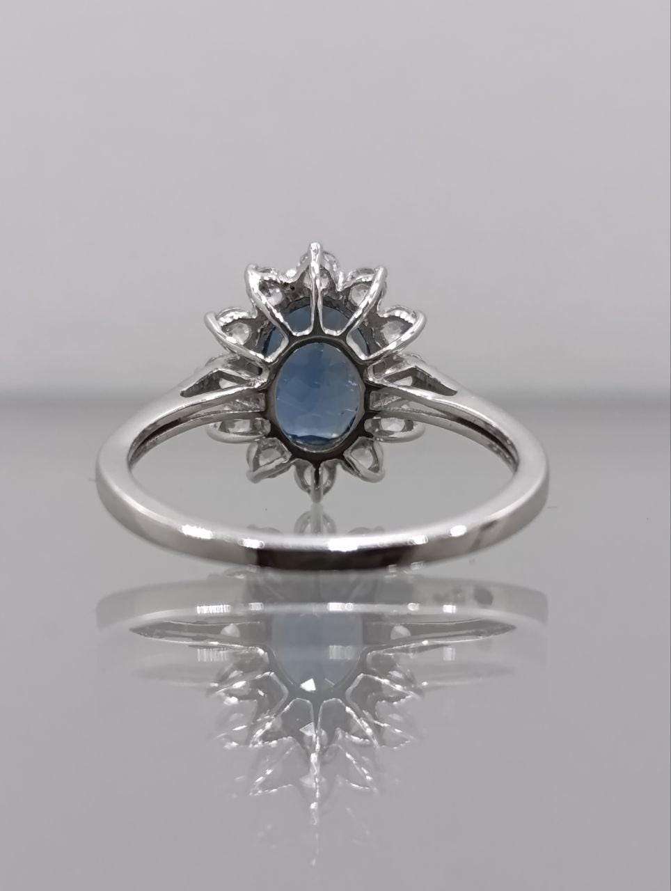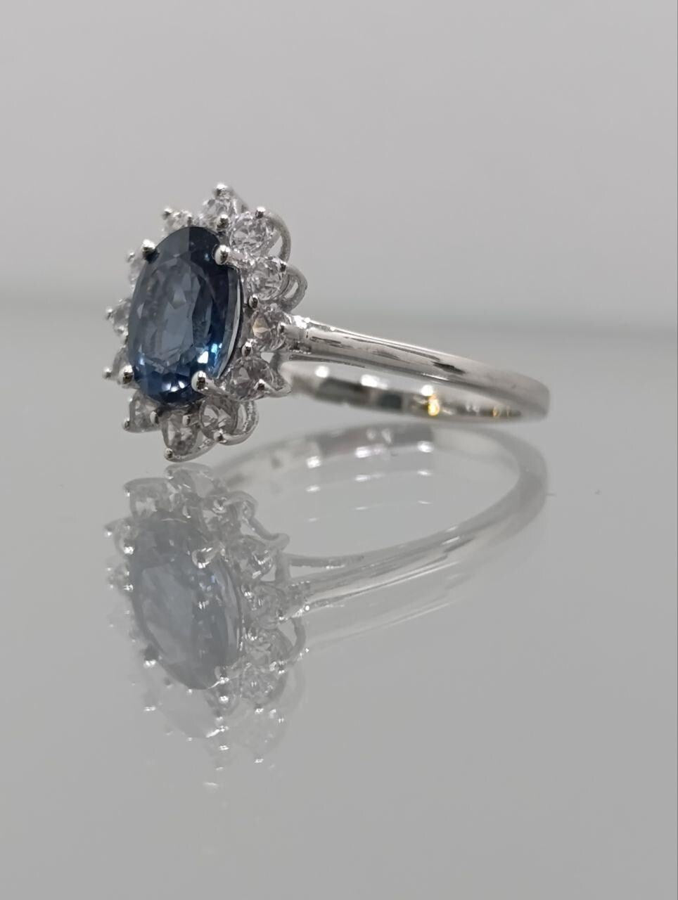 This exquisite 9ct gold ring showcases a rare Russian Indigo Kyanite gemstone, its deep blue hue reminiscent of the twilight sky. Twelve natural Cambodian cubic zirconia stones, totalling 3ct, surround the kyanite, adding a dazzling sparkle to this unique piece. This ring is a true standout and a perfect addition to any jewellery collection.