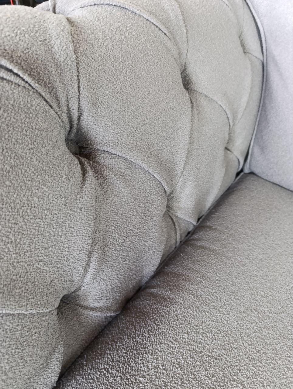 Indulge in ultimate comfort and timeless style with this stunning high-back Chesterfield style cuddle seat. Imagine sinking into its deep, generous proportions, enveloped in the soft and inviting touch of high-quality grey chenille fabric. This chair is designed for luxurious relaxation, making it the perfect addition to any living room, snug, or reading nook.