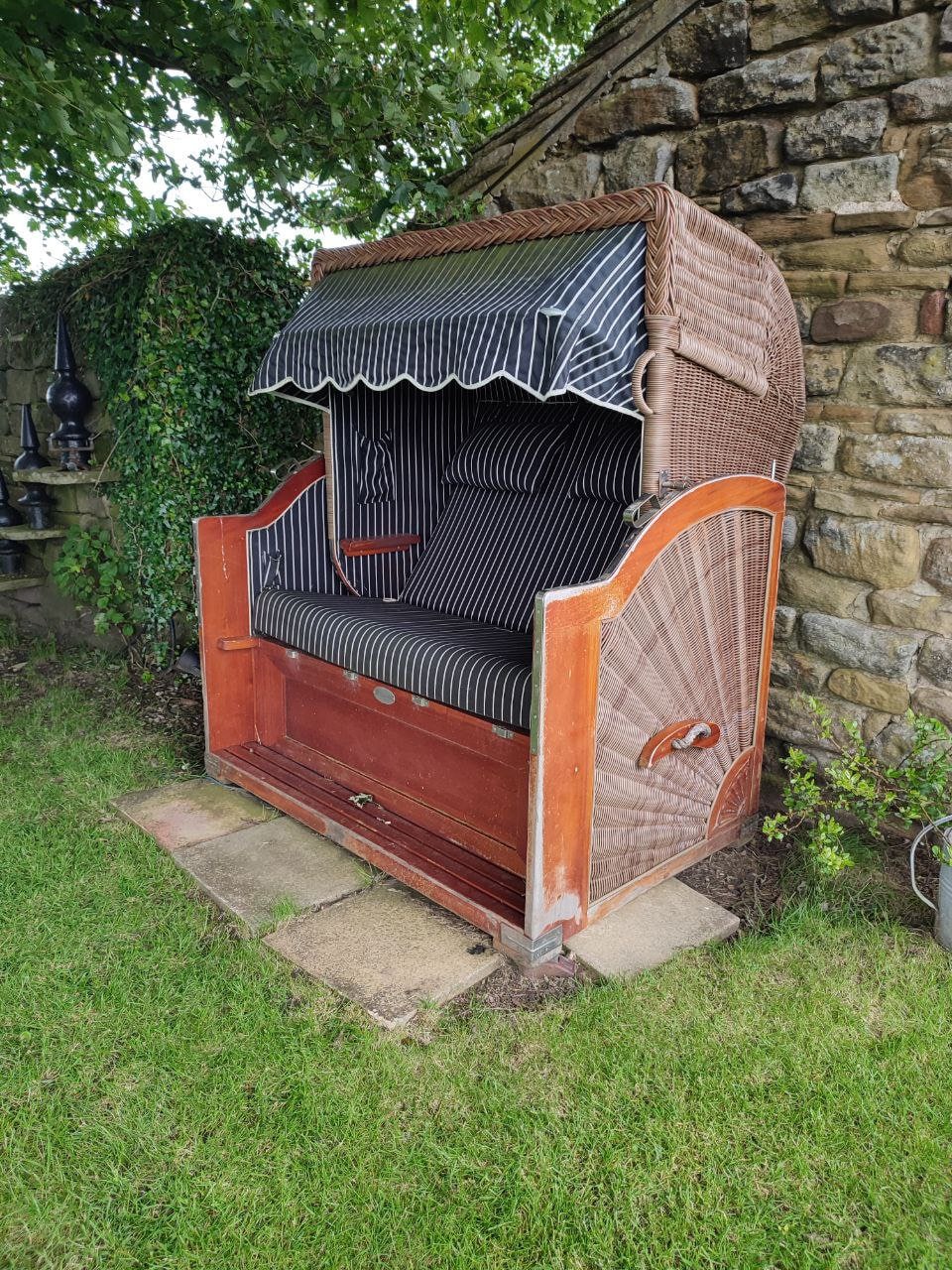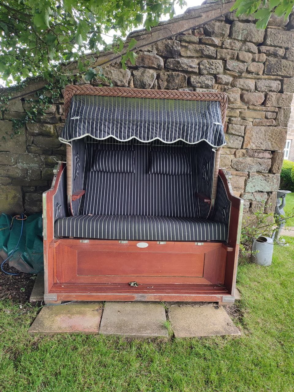 This 'Captain Seat' garden lounger is in very good used condition, showcasing the high-quality craftsmanship and materials used in its creation. The solid mahogany frame is sturdy and beautifully finished, and the weatherproof polyethylene wicker remains intact and resilient. The marine fabric upholstery is in very good condition and will be washed before dispatch, providing both comfort and durability. The stainless steel accents are polished and functional, enhancing the overall aesthetic and utility of the piece. This lounger has been well maintained and is ready for immediate use. It has had minimal use and will be cleaned and oiled before being sent out. The original owner purchase the item for £5,000 and they are presently sold new for £4,200.