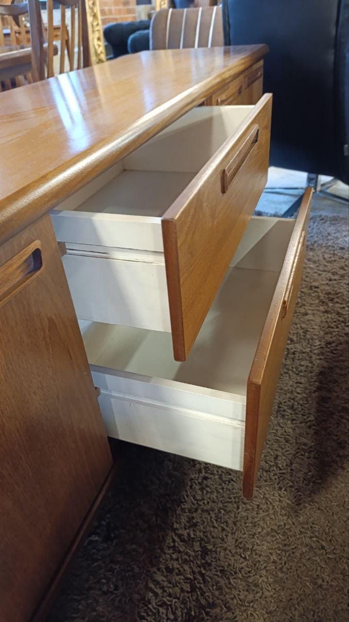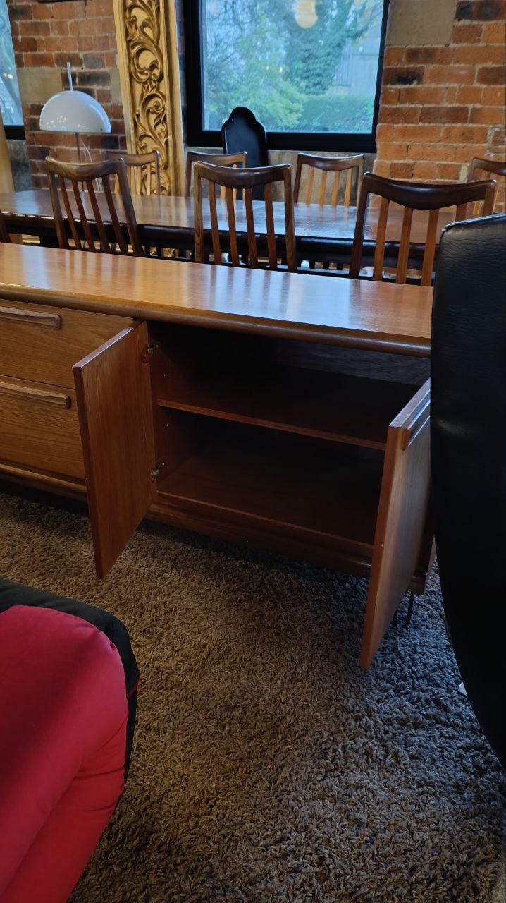 A classic mid-century teak sideboard by Meredew, c.1970s - known for refined craftsmanship, elegant proportions, and the warm, characterful timber tones that define the best of British modernist furniture.