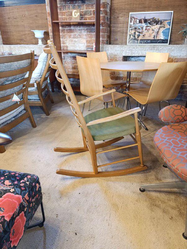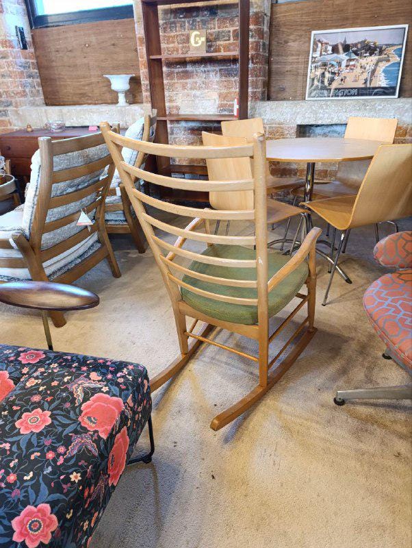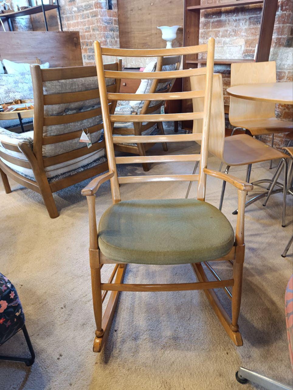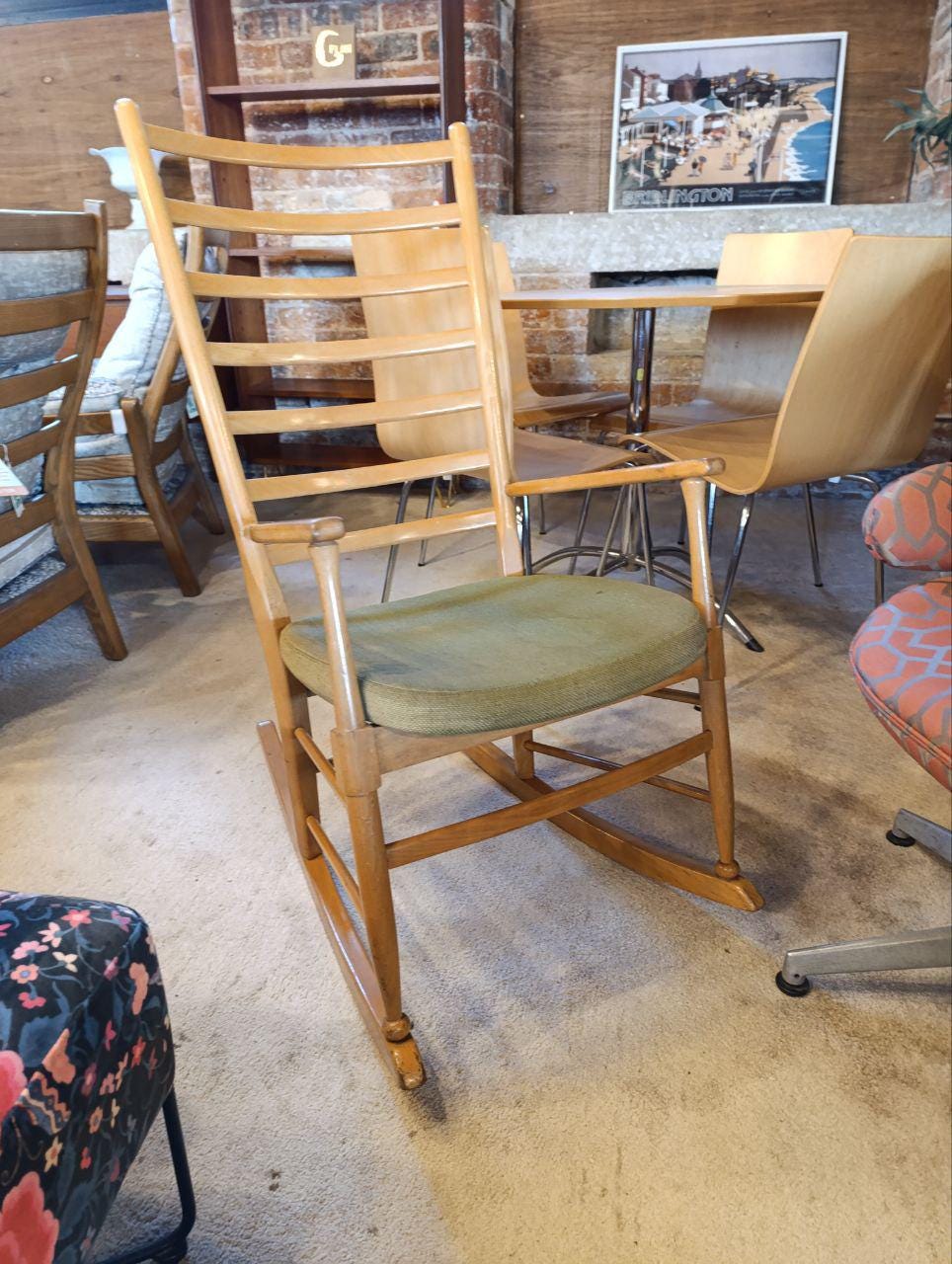 Explore our range of carefully curated mid-century furniture at Vintage at the Mill. Our showroom at Cullingworth Mills showcases classic designs like this Scandart rocking chair, alongside other unique vintage pieces. Visit us today or browse online for more timeless finds.