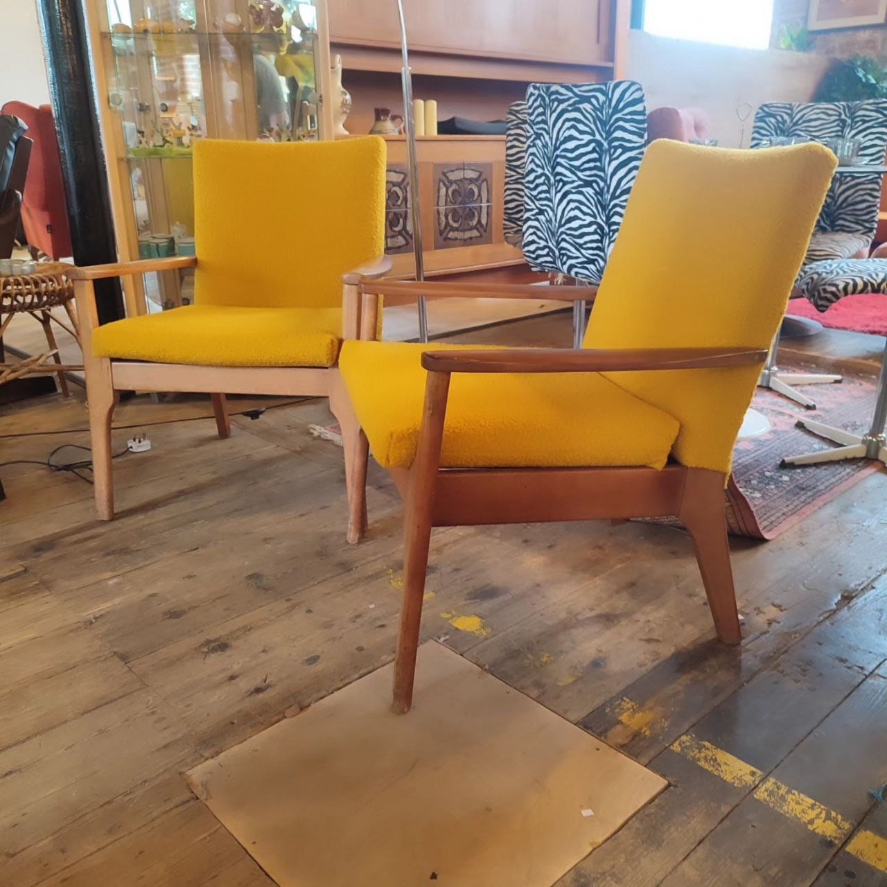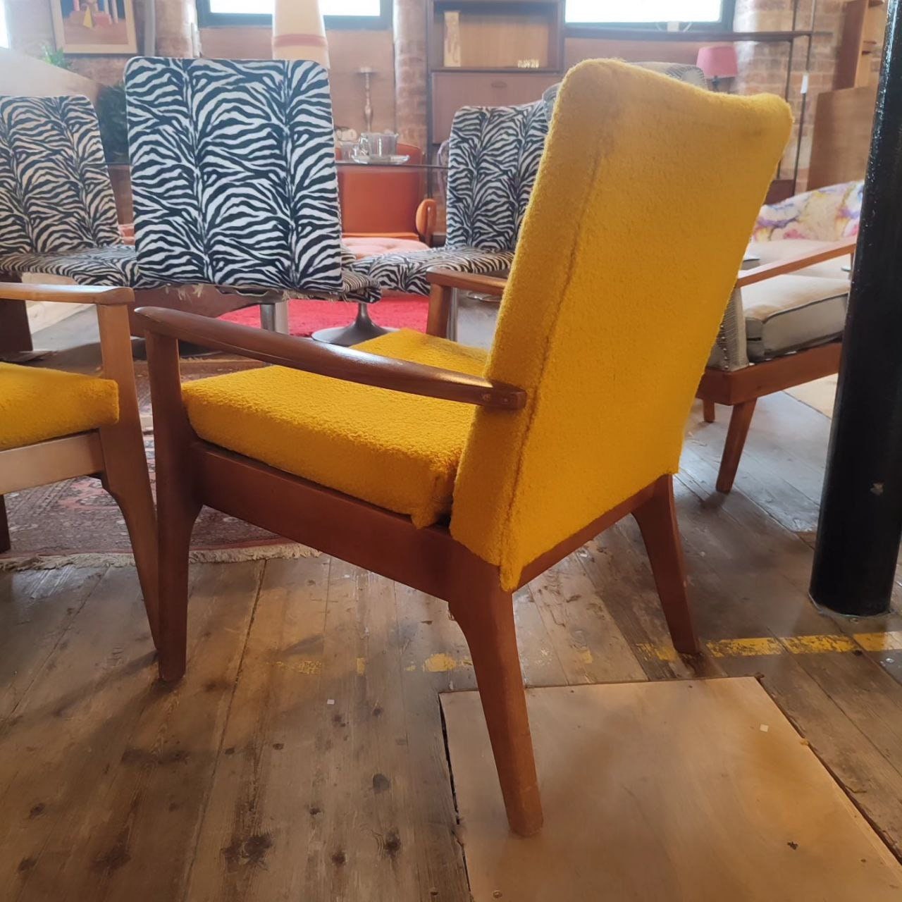 The chairs are in excellent vintage condition with restored arms and brand new upholstery.