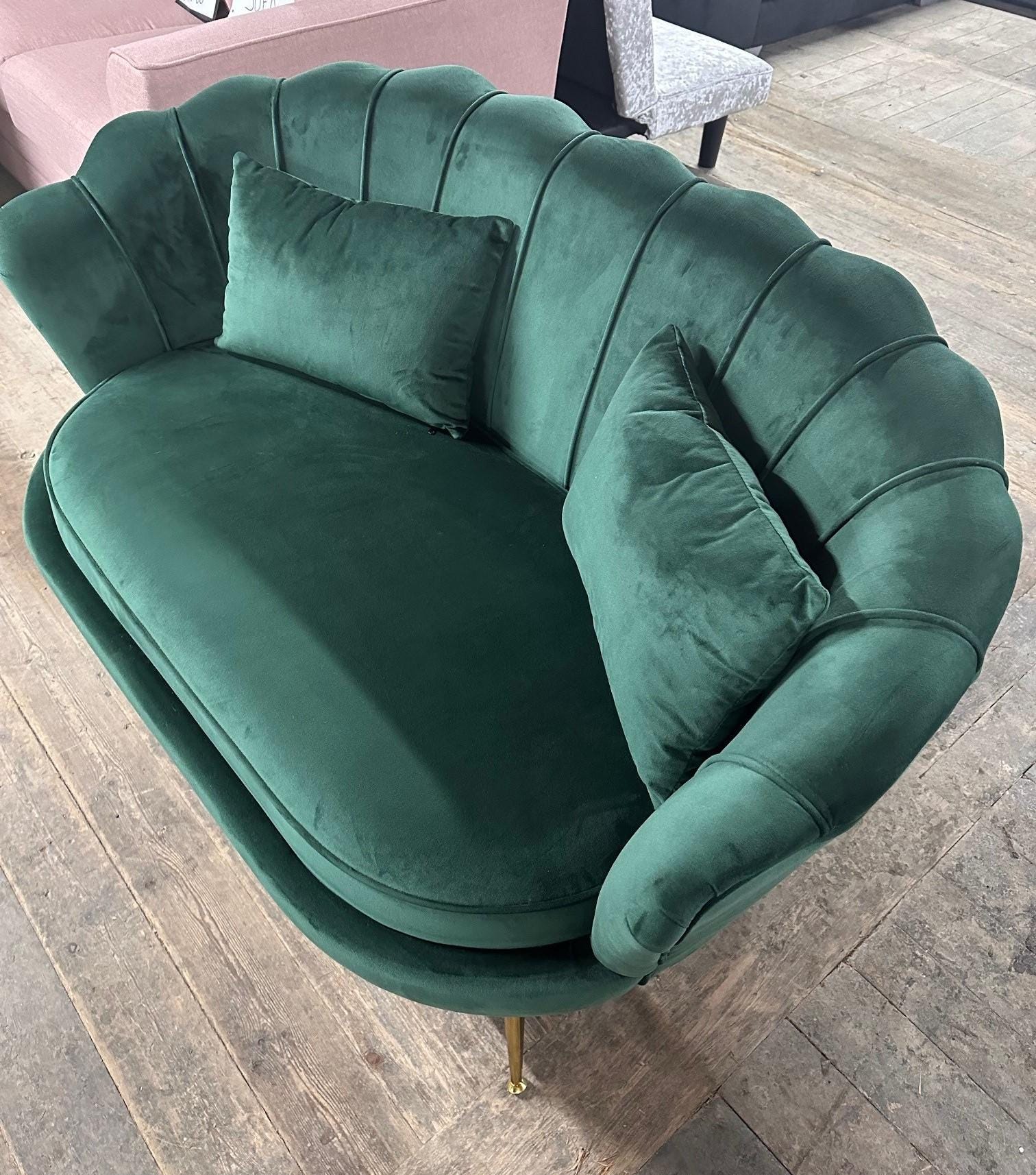 The Carney Velvet Love Seat is a stylish and comfortable addition to any modern home. Upholstered in a luxurious brush steam green velvet, this two-seater sofa features a compact and curved design with a unique scalloped backrest. Handmade with meticulous attention to detail, the Carney Love Seat comes with two matching toss pillows for added comfort and style. Whether you're curling up with a book or hosting an intimate gathering, this love seat is the perfect blend of elegance and functionality.