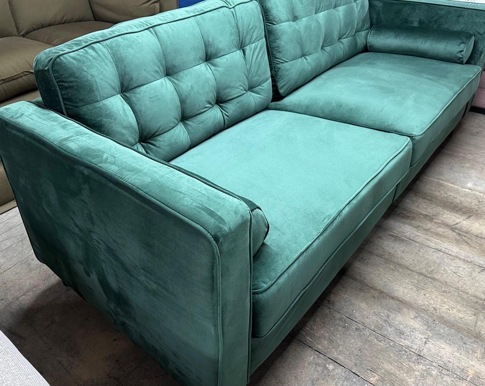 Mid-Century Modern Velvet Two-Seater Sofa - Elegant Deep Green