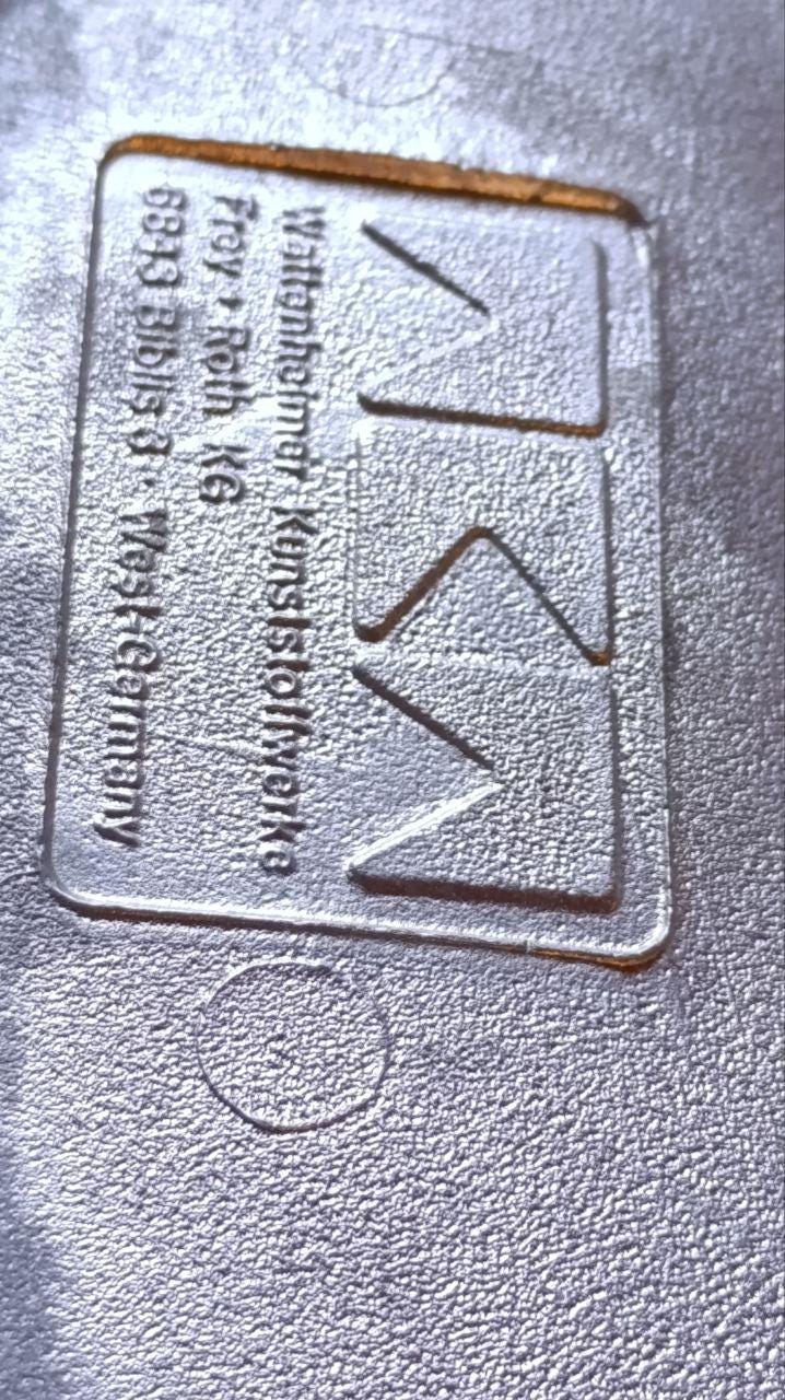 A striking mid century dining set featuring a round glass-top table with a stamped West German base by WKW (Waltenhofener Kunststoffwerke, Frey + Roth KG), paired with four authentic mid century swivel dining chairs.