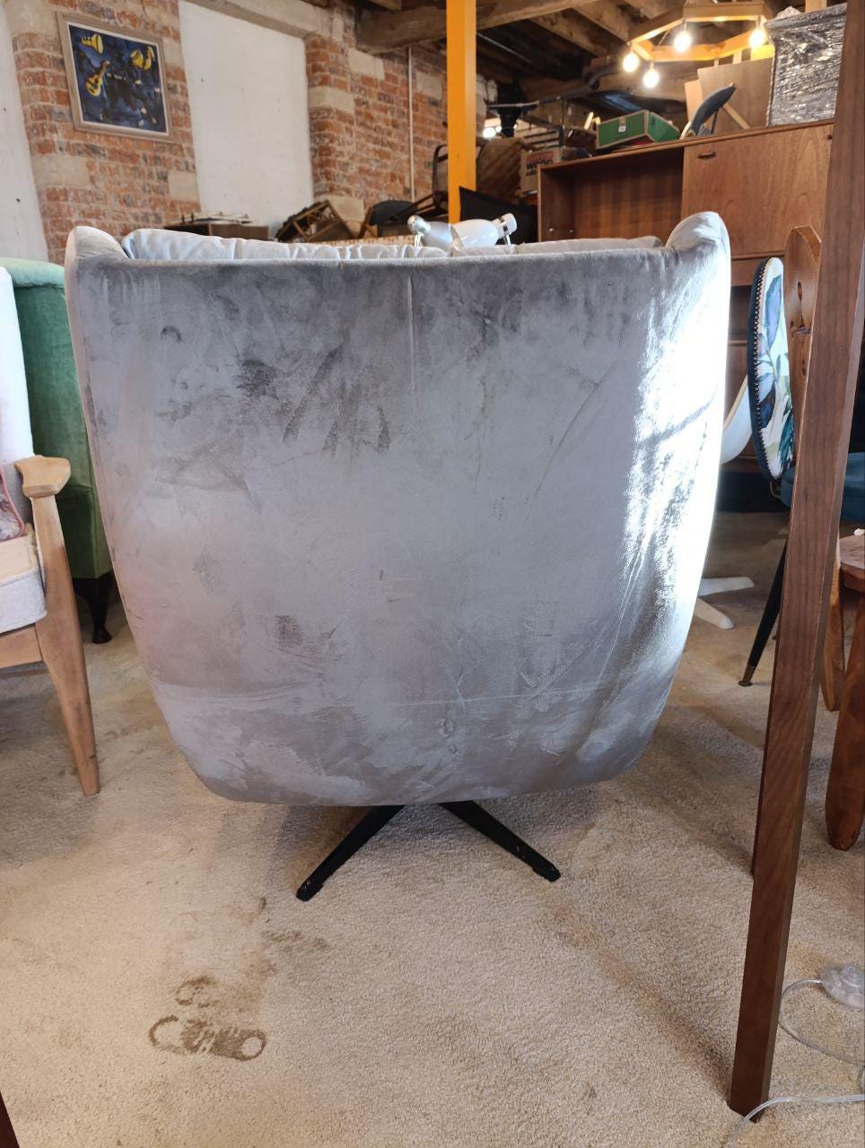 Mid-century modern lounge chair, swivel base, velvet upholstery, retro 1960s style, well-built frame, comfortable seating, timeless design, vintage style, functional gliders, classic MCM chair, retro lounge chair
