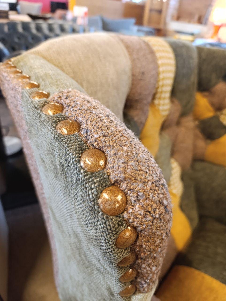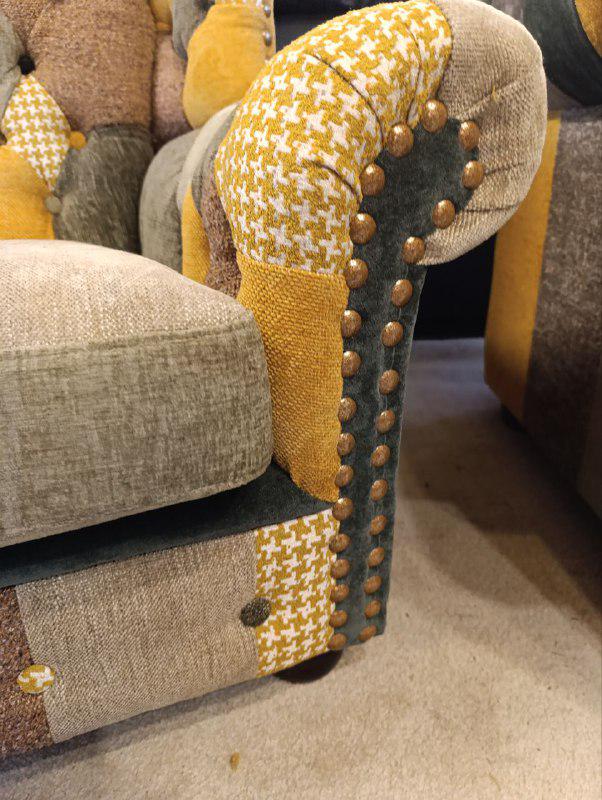 Newly Upholstered Vintage Chesterfield Armchair in Harlequin Style Patchwork