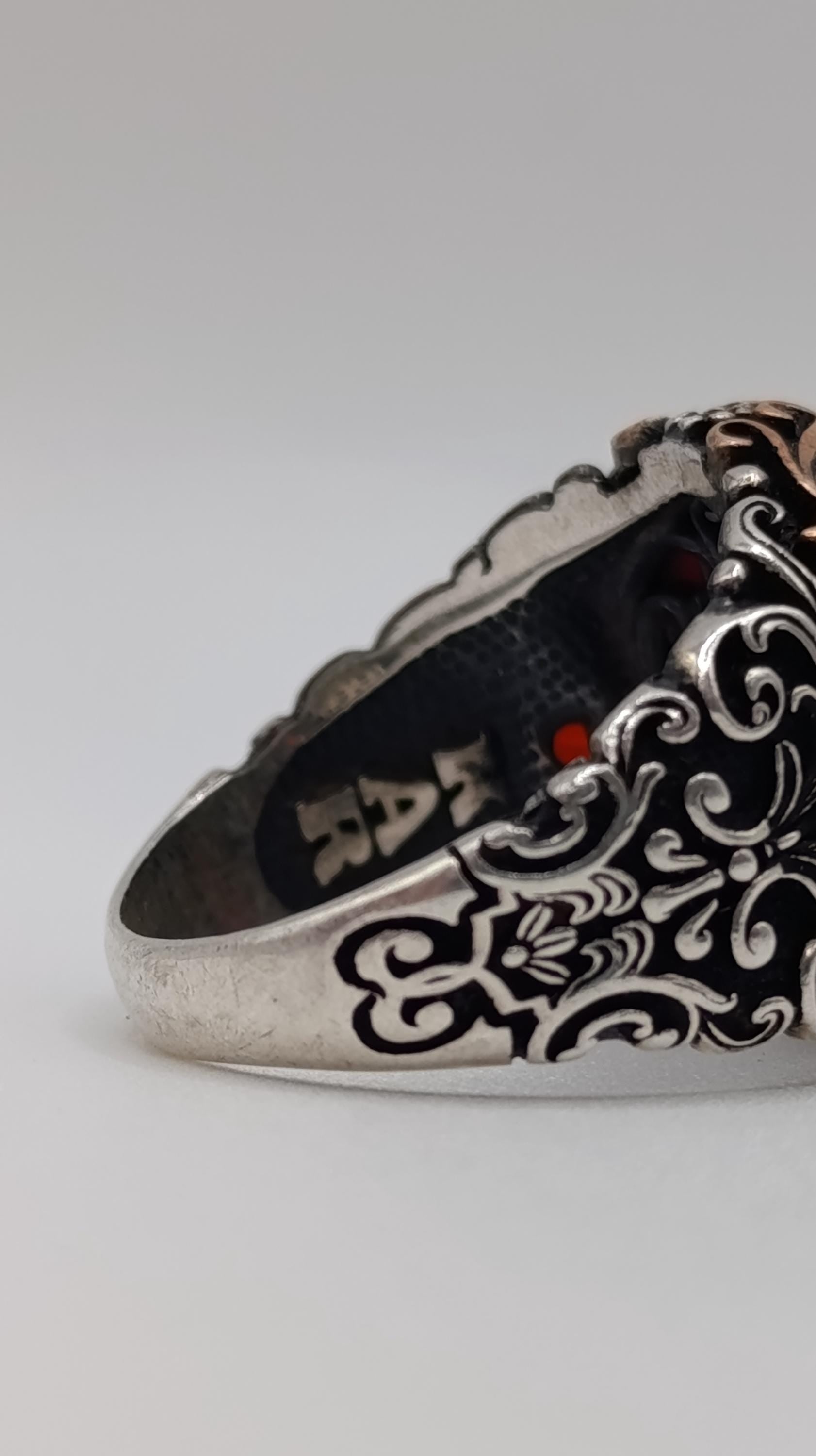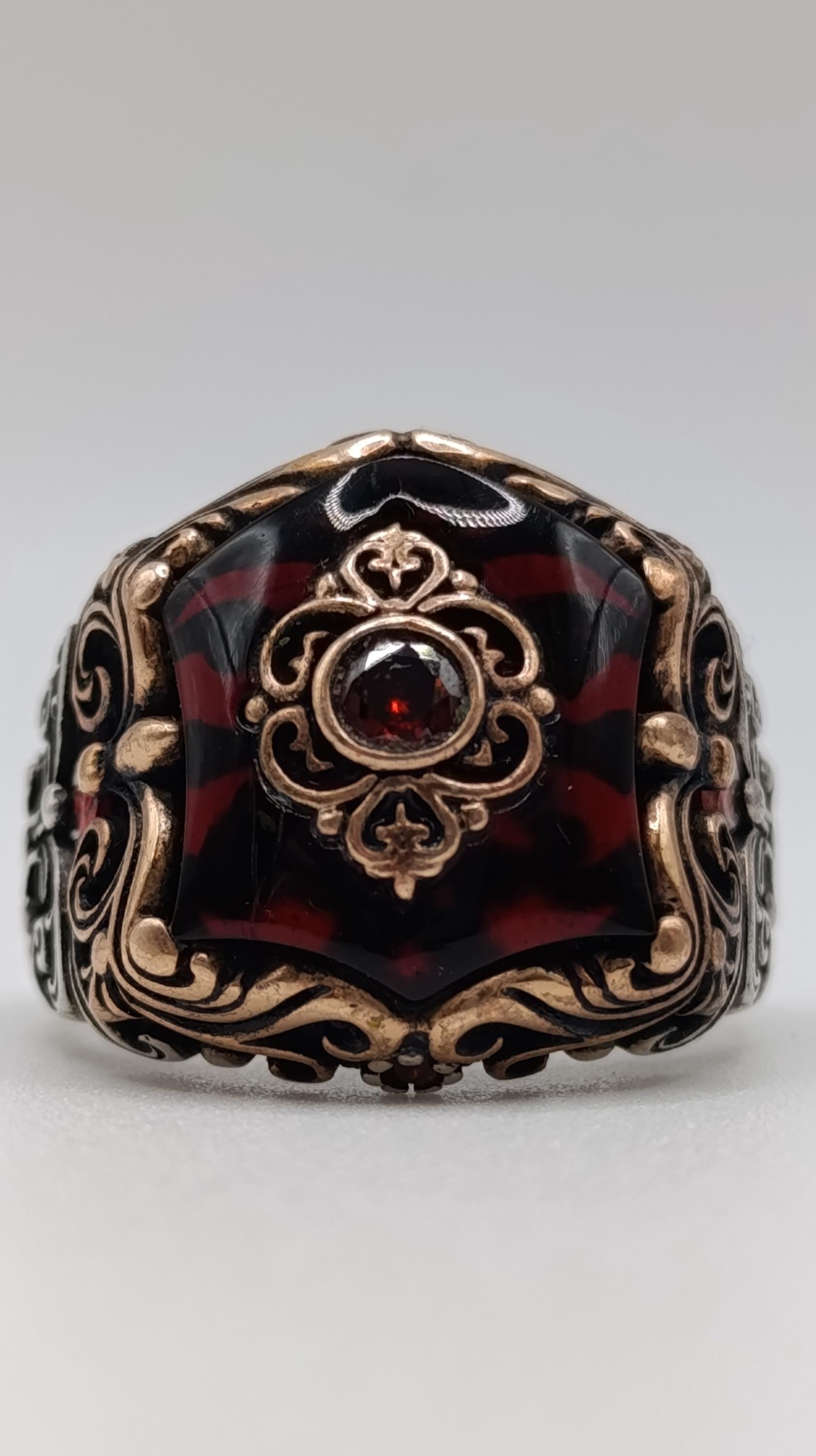 Ornate Sterling Silver & Garnet Ring, Handmade in Turkey