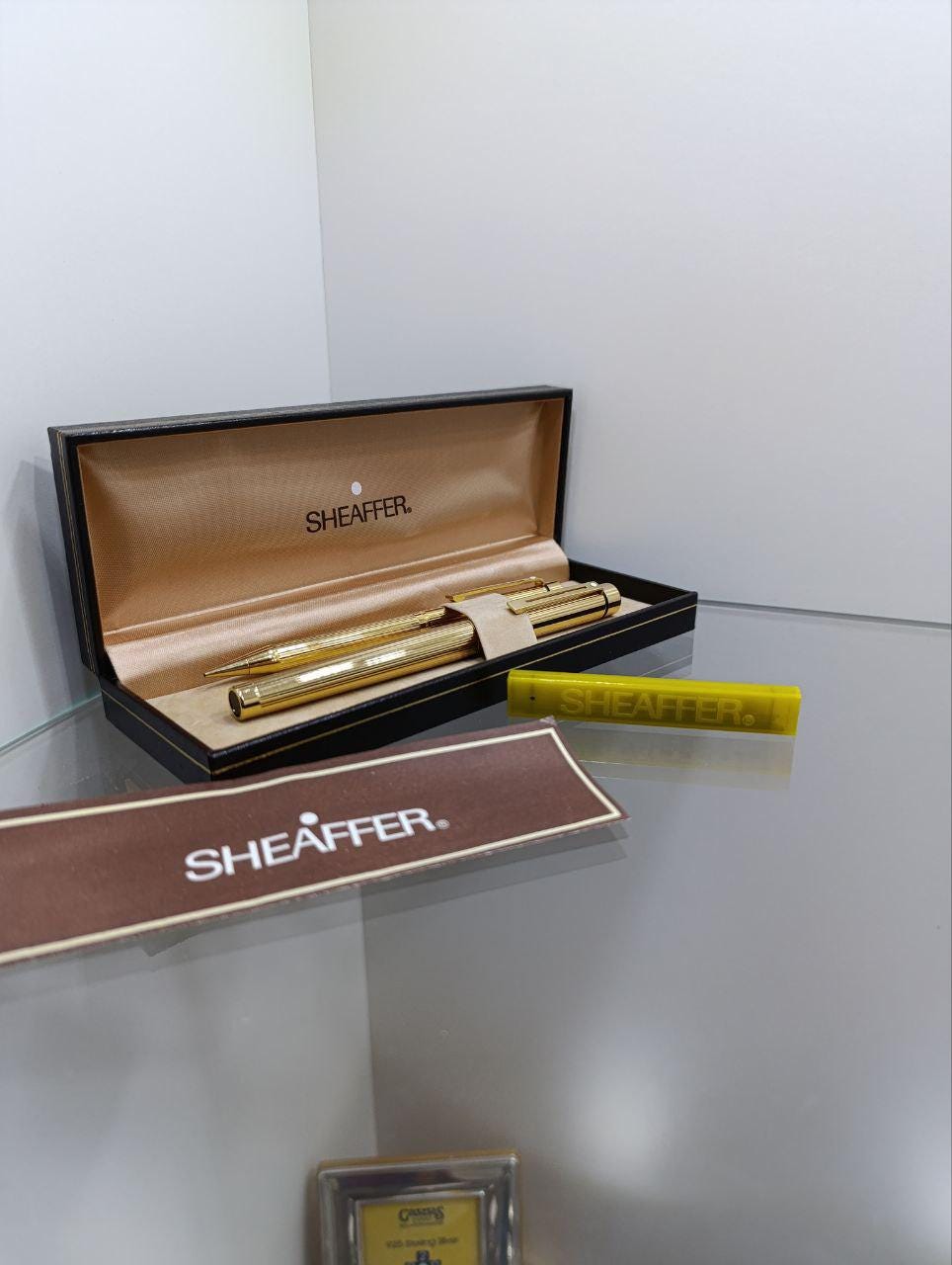 Rare Vintage Sheaffer Targa Classic Fountain Pen & Pencil Set - Fluted Gold Plate