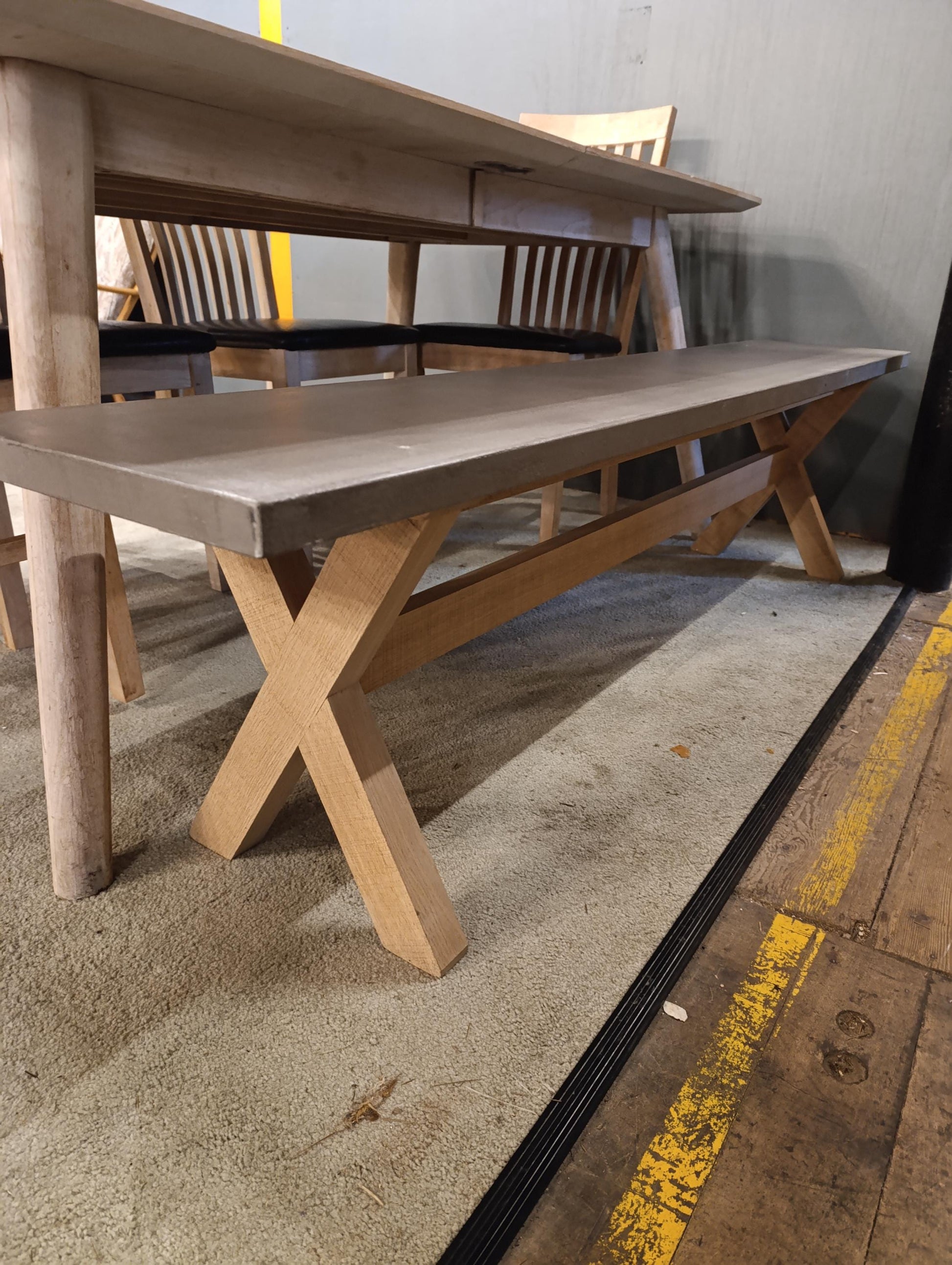 A stunning natural Beechwood plank table on four which legs. The plank table is a substantial piece of furniture with a good weight to it.
