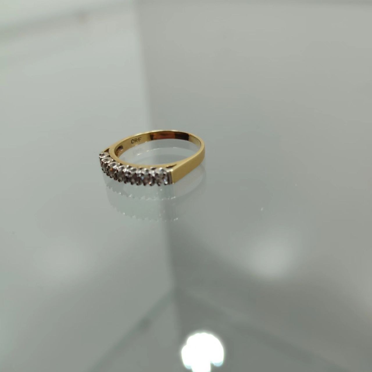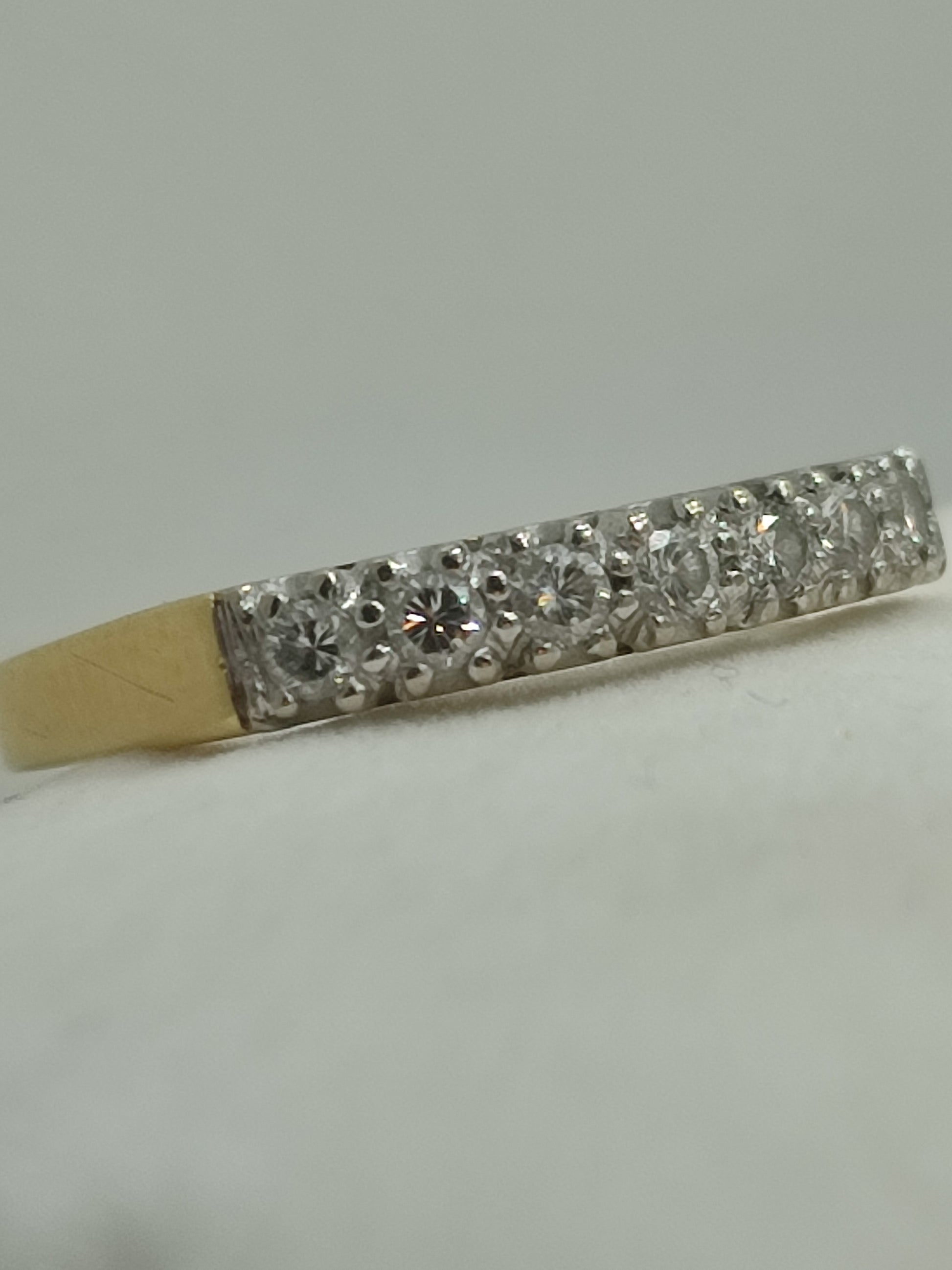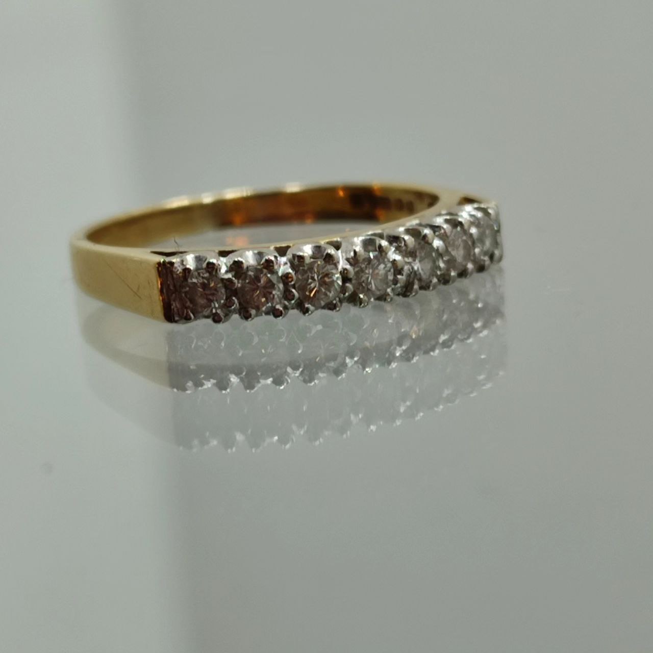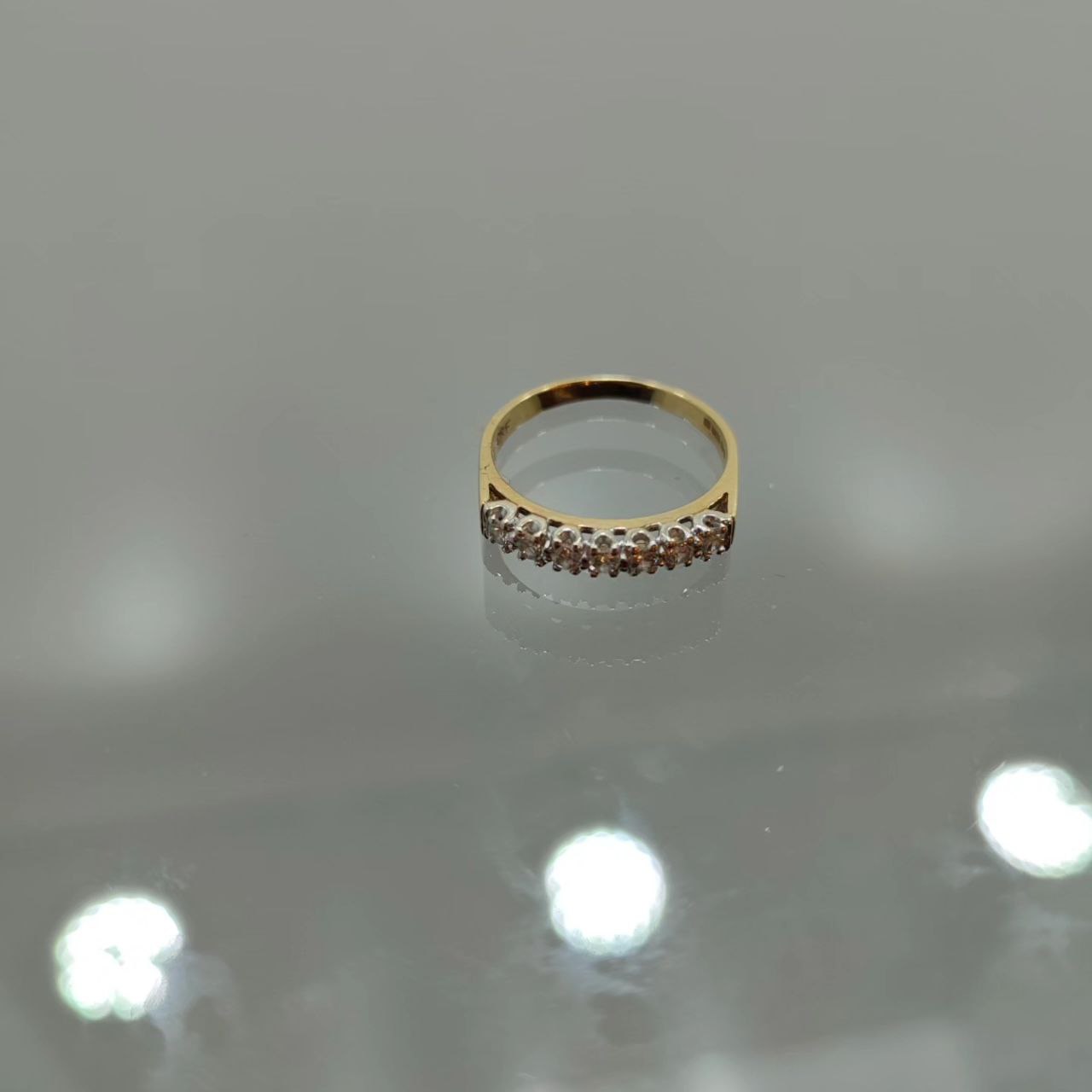 Embrace timeless elegance and radiate sophistication with this exquisite seven-stone diamond half hoop eternity ring. Capture the allure of timeless beauty with seven sparkling brilliant-cut diamonds, meticulously point-set to create an unbroken line of shimmering brilliance. This captivating ring embodies the epitome of luxury, crafted from exquisite 18ct gold, ensuring a luxurious presence on any finger. The ring's weight is 1.8 grams.