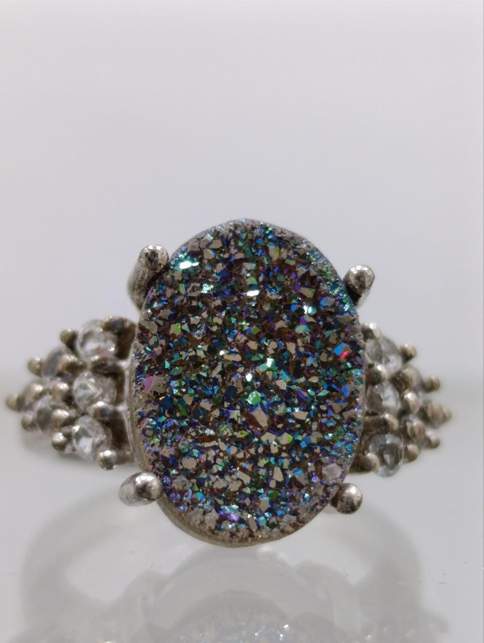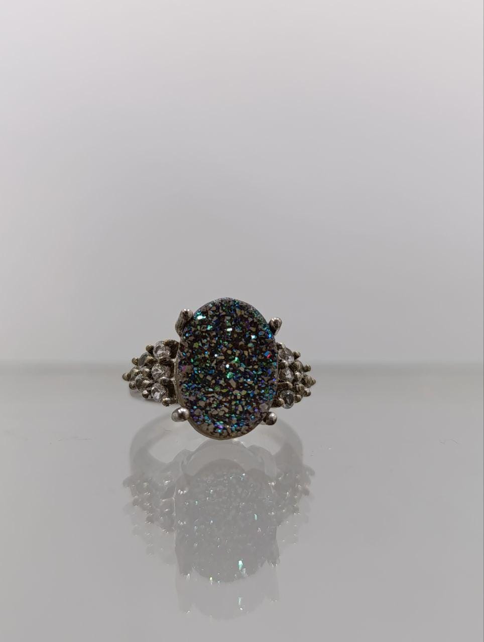 Material: 925 silver, druzy quartz in green and blue with cubic zirconia.