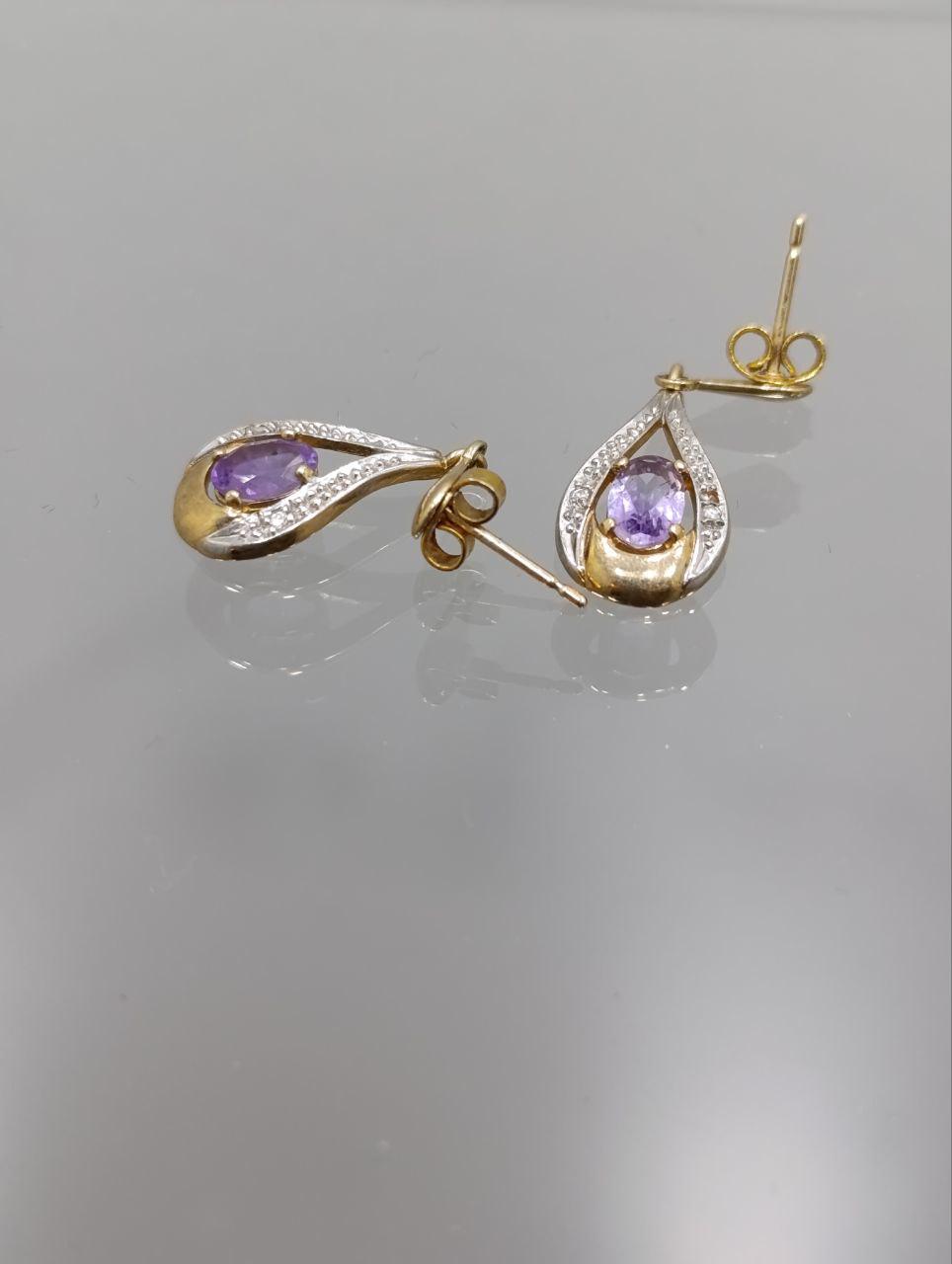 Stunning Vintage 9ct Gold Amethyst & Diamond Drop Earrings