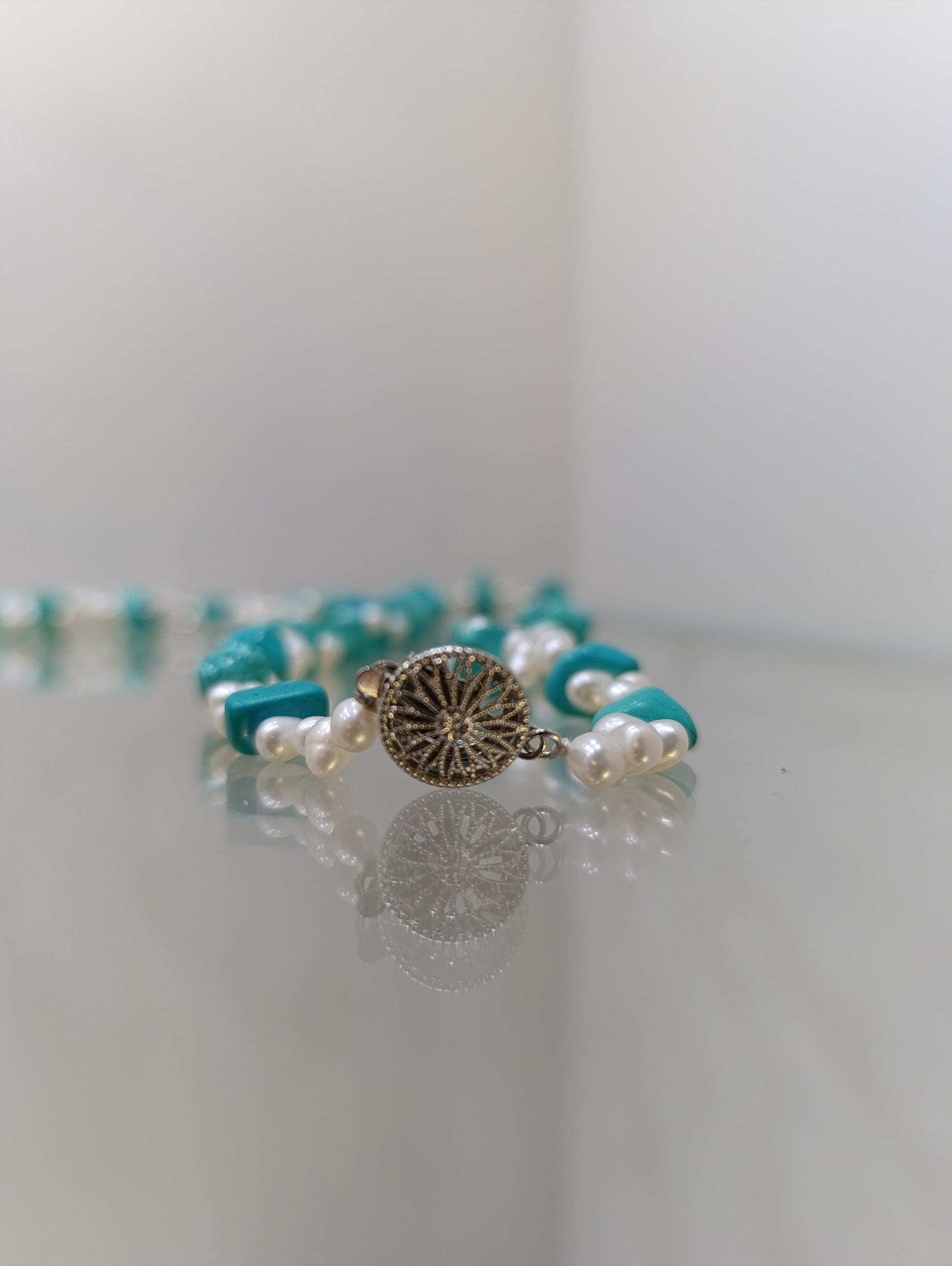 Turquoise and Pearl Necklace & Bracelet Set