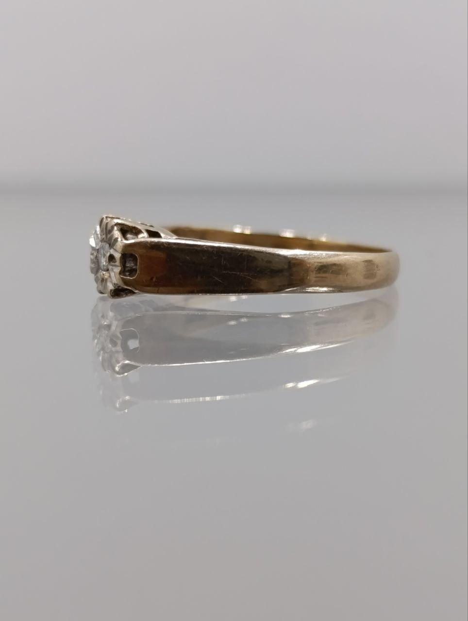 This elegant vintage solitaire ring features a sparkling diamond set in a classic 9ct yellow gold band. With its timeless design and brilliant sparkle, this ring is a perfect addition to any jewellery collection, adding a touch of understated elegance to any occasion.