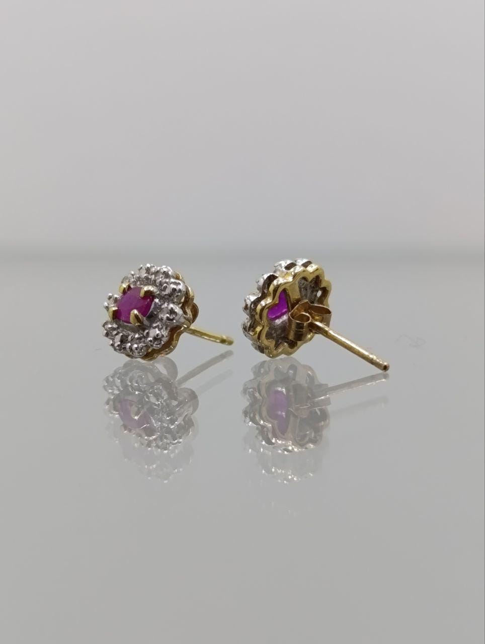 Vintage 9ct Gold Ruby & Diamond Cluster Earrings