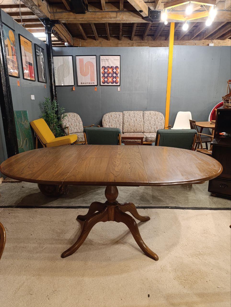 Vintage Ercol Chester Extending Pedestal Dining Table - Golden Dawn