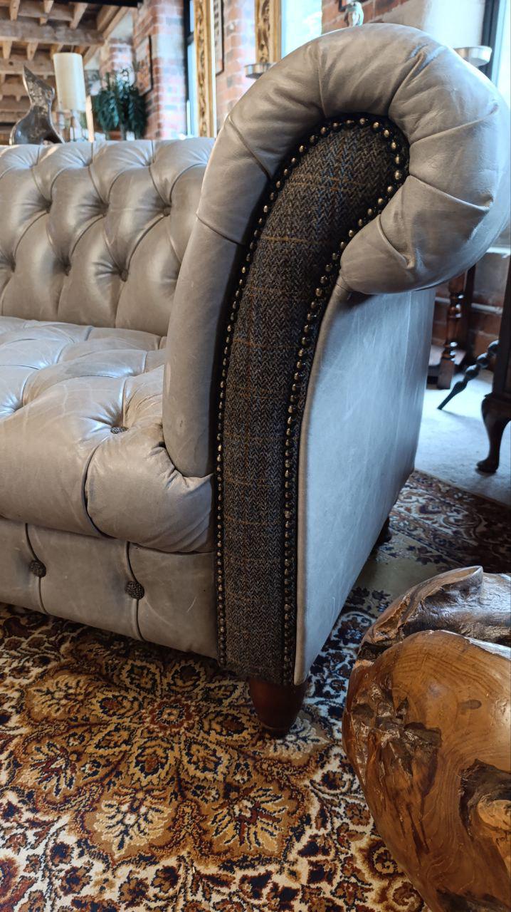 Vintage Grey Leather Chesterfield Style Sofa with Deep Button Tufting