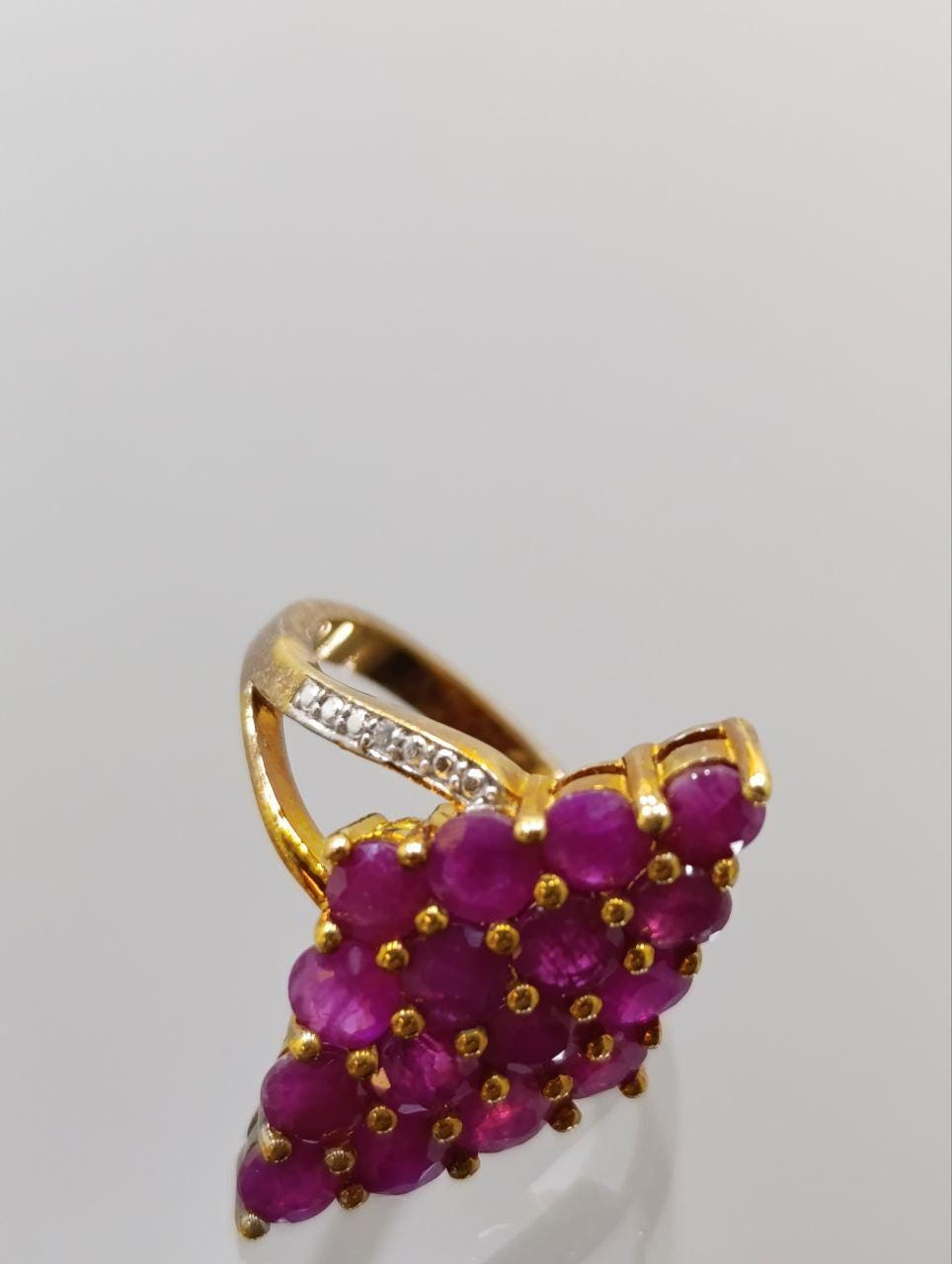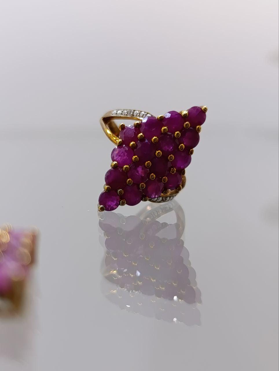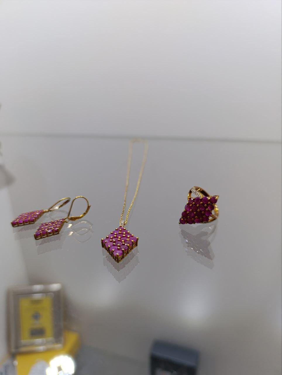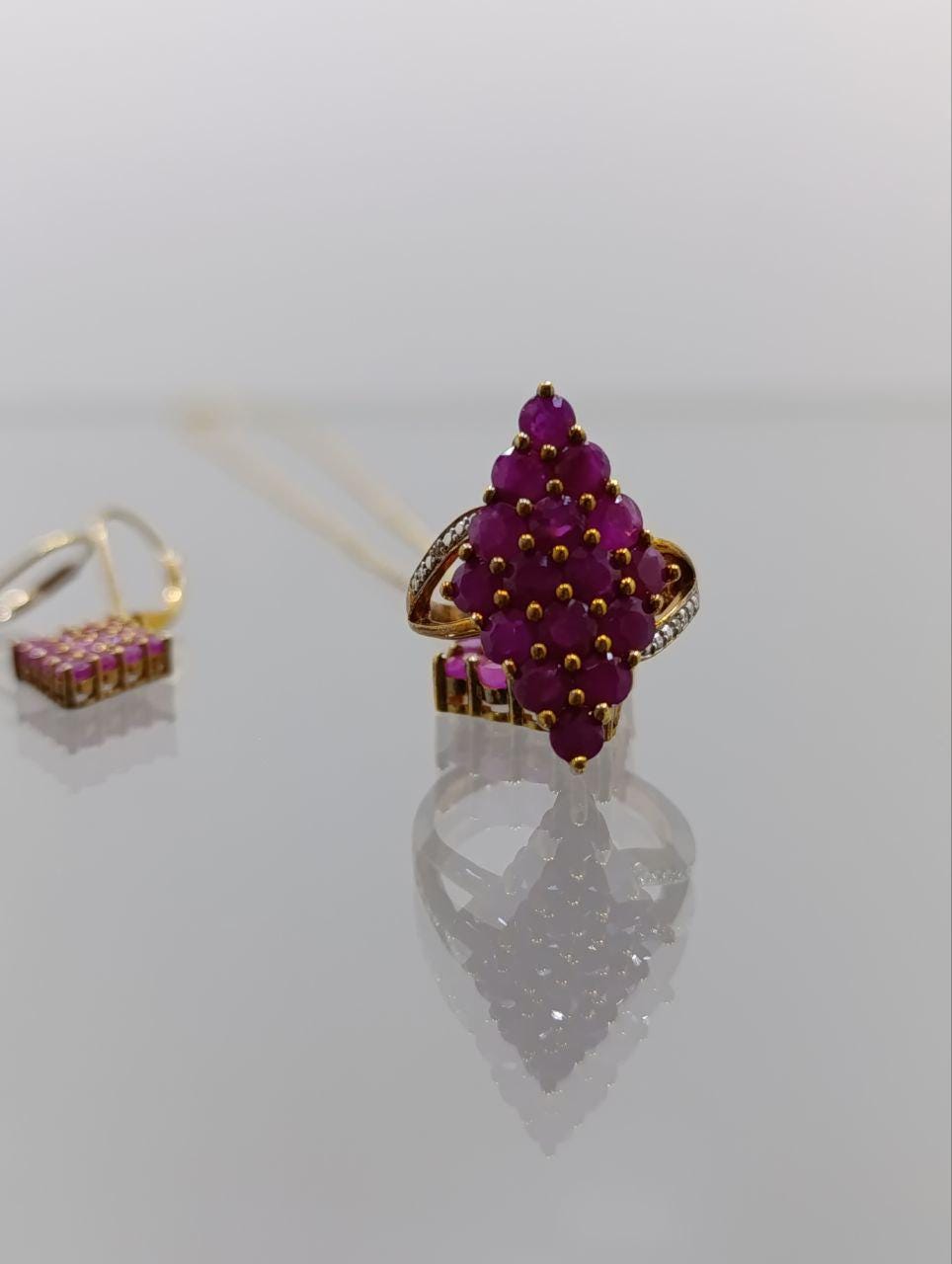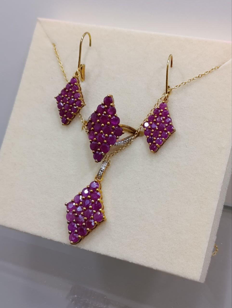 Material: 925 silver, gold plated, unknown gemstones (possibly African rubies), cubic zirconia, marcasite