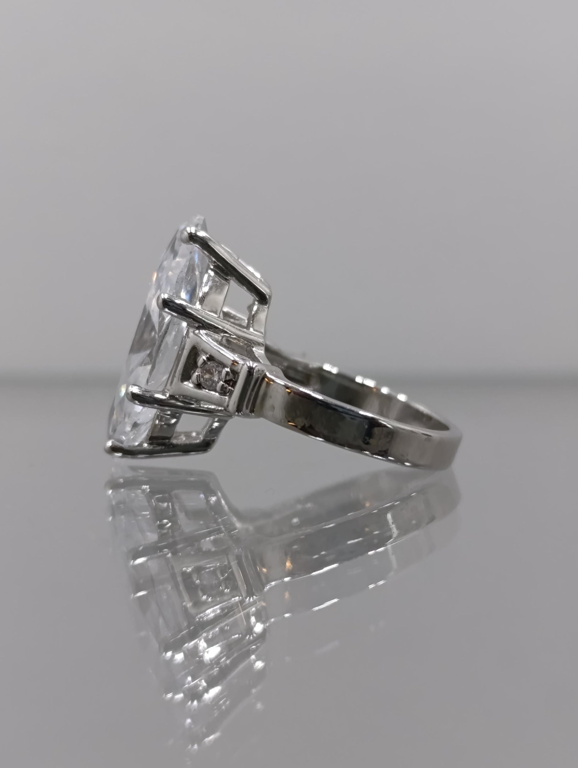 Design: Solitaire, elegant band, studded with large 4ct CZ stones